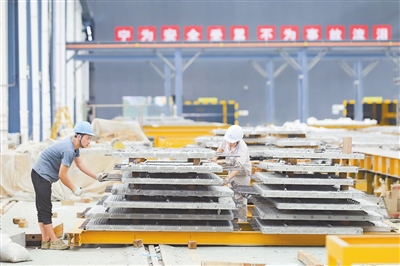 近日,湖口县高新园区内的装配式建筑生产车间,工人正在赶制订单。该县加快培育发展智能制造装备、新一代信息技术装备,形成重点引领、优势突出的高端装备产业体系,推动经济发展提质增效。特约通讯员 张 玉摄