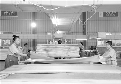 近日,几名农民在奉新县柳溪乡江西沣兆竹木科技有限公司车间忙碌。近年来,奉新县积极扶持服装、竹制品等本土企业引进先进技术,扩大产品销路,帮助农村群众实现在家门口就业。谢文凡摄