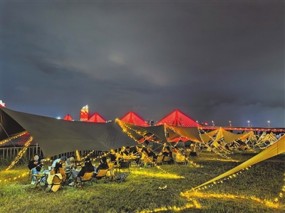 10月3日,南昌市赣江边,许多市民在烧烤露营,享受惬意假期生活。本报全媒体记者 蔡铖歌摄