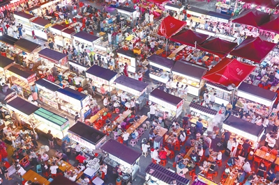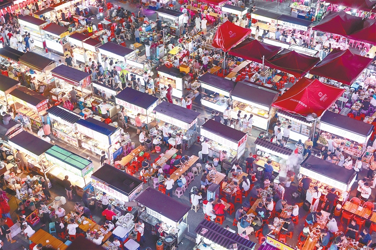 近日,南昌经开区紫荆夜市人声鼎沸,游客漫步其中品尝美食,享受假期。本报全媒体记者 洪子波摄