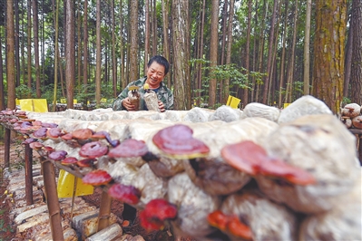 | ▶ 近日,广昌县旴江生态公益林场,种植户陈用金正在察看桑黄、樟芝等食用菌的生长情况。近年来,广昌县充分利用当地森林生态资源优势,积极引导群众发展林下经济。本报全媒体记者 李 劼摄 |