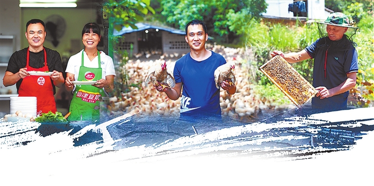走进上饶市广信区五府山镇中华蜜蜂谷,顺着溪水汩汩流淌的方向,沿岸一排排桶式蜂箱映入眼帘。在当地,人们养蜂很普遍。2017年,罗贤华易地搬入五府山镇幸福花园时,也跟着当地养蜂合作社,在自家山地养了100多箱蜜蜂。养蜂虽然收入不多,但也不需要花太多精力去打理。其他时间,罗贤华可谓是个“百变金刚”。他掰着手指算起了干过的行当:幸福花园的管理员、木工、稻田管家、菜农等。今年在五府山“三月三”畲族文化旅游活动月中,老罗还跑起了龙套。他看着镜头里的自己说:“我是农民演农民,精神头还不错啊。”