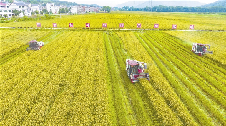 10月14日,位于横峰县岑阳镇岑港村的夏季制种水稻基地迎来收割季,村民抢抓农时抢收制种水稻。通讯员 薛 南摄