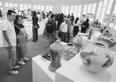 10月18日,景德镇陶博城国际会展中心,各式各样的陶瓷产品琳琅满目,吸引了众多游客和展商前来观赏和选购。本报全媒体记者 徐 铮摄