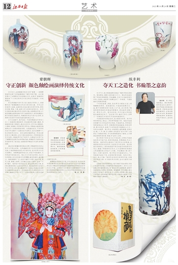 通过色彩斑斓的颜色釉去诠释,用陶瓷特有的语言艺术与手段去渲染。这种超越东西方文化差异的情感交流,让他的陶瓷绘画艺术打破传统,走向世界文化艺术的舞台。章朝辉偏爱传统文化,热衷于传统题材,尤其热爱中国戏曲文化。他认为艺术家关注传统、关注文化的源流,是关注民族文化的精髓,越是民族的,越有魅力。他绘画题材广泛,涉及古建筑与风景、戏曲人物、现代人物、佛教人物等,尤其擅长戏曲人物和“老房”“大院”题材。他深挖中国戏曲文化,通过表现戏曲人物,如《贵妃醉酒》《杨门女将》系列作品,用民族的符号表现中华优秀传统文化,通过陶瓷传承与创造,传递出较高的艺术精神和生命意义。其创造性的艺术表现力和艺术风格在陶瓷艺术界产生了广泛深刻的影响,尤其是戏曲人物享誉世界。