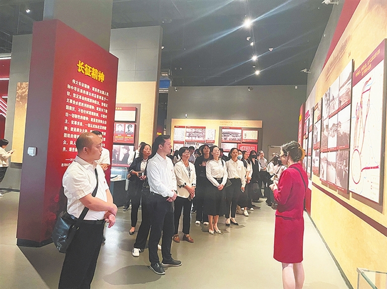 为加强党员教育管理,进一步提高全系统干部职工的政治意识和理论水平,10月17日至19日,南昌市供销联社举办了2023年度党员轮训班,并首次通过线上直播的方式为离退休老党员“送课到家”,直属机关党委所属各基层党组织、社团党委所属各行业协会党支部全体党员共计200余人参加培训。图为参训党员在江西省博物馆“红色摇篮”专题展厅聆听讲解员讲解。杨心欣摄