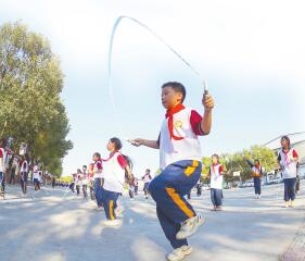 该校5年级学生陈怡欣刚跳完韵律绳,脸上红扑扑的,她笑眯眯地说:“现在我们也有了这么多兴趣班,每天可快乐了!”