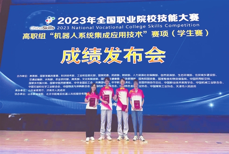 以专业数字化转型升级为抓手,改造传统专业。近年来,学校改造升级智能焊接技术、汽车制造与试验技术专业,增设数字化设计与制造、大数据技术等新专业,不断夯实装备制造类技术技能专业。在专业转型升级的同时,师生也在专业教学中共生共长。2023年,秦航老师荣获第七届江西省优秀高技能人才“江西省能工巧匠”称号,靖娟老师入选江西省高层次高技能领军人才培养工程人选。学生在全国职业院校技能大赛机器人系统集成应用赛项中获一等奖,在“一带一路”暨金砖国家技能发展与技术创新大赛之集成电路工程技术应用赛项中获一等奖。