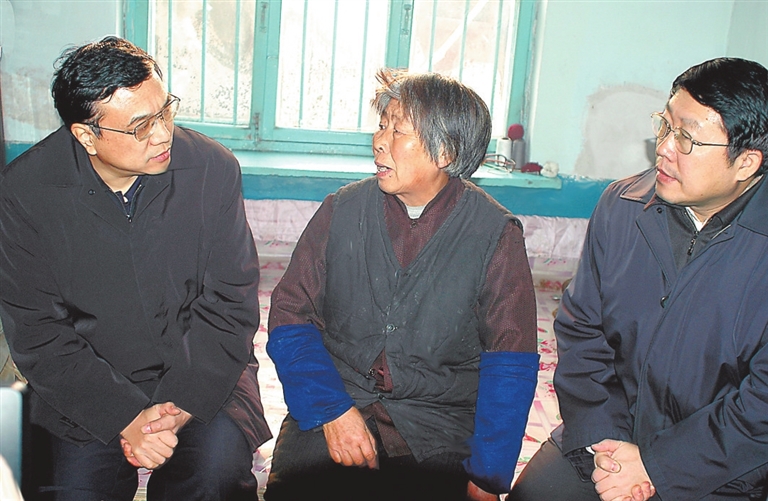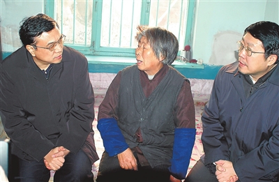 2004年12月26日,李克强同志到辽宁省抚顺市莫地沟棚户区居民王淑贞家中走访调研。 新华社发
