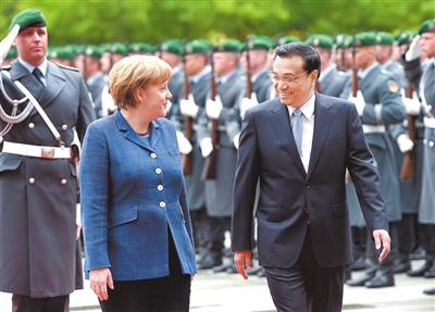 2013年5月26日,李克强同志在柏林出席德国总理默克尔举行的欢迎仪式。 新华社记者 马占成摄