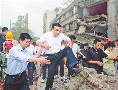 2008年5月19日,李克强同志在四川地震灾区察看灾情。 新华社记者 兰红光摄