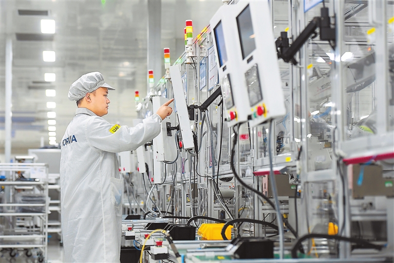 10月30日,工作人员在宜春市佛吉亚歌乐电子(丰城)有限公司的绿色制造工厂里忙碌。宜春市认真贯彻落实习近平总书记考察江西重要讲话精神,引导各类企业建设绿色工厂,并依托“头部”企业,带动上下游产业链减排降碳、绿色生产。目前,该市已有国家级绿色园区3个,绿色工厂24家,绿色设计产品7个。