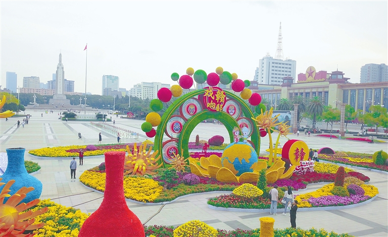 秋意正浓,菊花飘香。11月3日,不少市民和游客来到南昌八一广场赏菊。南昌市第35届菊花展在11月4日正式开幕,本届菊花展以“豫章故郡 发奋南昌”为主题,采用分散布景模式,共设18个展示位,活动将持续至12月3日。