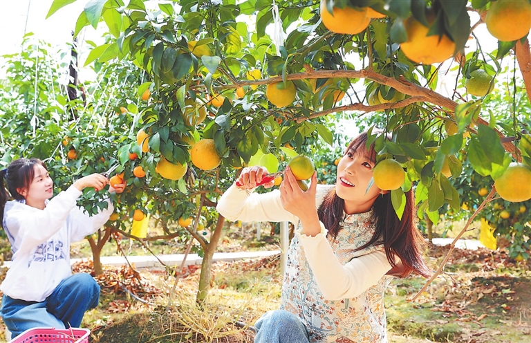 11月6日,在万年县上坊乡红美人果业基地,游客正在体验采摘乐趣。万年县深入贯彻落实习近平总书记考察江西重要讲话精神,引导各乡镇立足实际,努力把生态资源转化为产业优势,通过“公司+基地+农户”模式,带动当地农民增收,促进乡村振兴。本报全媒体记者 余 燕摄