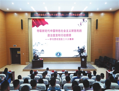 获评教育部第三批国防教育特色学校、团中央社会实践优秀志愿服务队,入选江西省第一批高校青年志愿服务站试点建设名单,获评省级课程思政教学研究示范中心、首批“江西省省级工匠学院”……作为中国特色高水平高职学校建设单位,九江职业技术学院坚持不懈用习近平新时代中国特色社会主义思想凝心铸魂,扎根赣鄱红色土地,弘扬船舶军工文化,突出职教特色办学,立足“德技并修、红专融合”的高素质技术技能人才培养,不断深化新时代文明实践工作,大力开展创新理论宣讲、红色基因传承、文明实践育人、为民惠民服务等教育实践活动,使新时代文明实践中心的作用得到充分发挥。