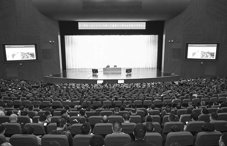 11月9日上午,学习贯彻习近平总书记考察江西重要讲话精神省委宣讲团报告会在赣州市举行。省委宣讲团成员、省生态环境厅党组书记余正琨作宣讲报告。