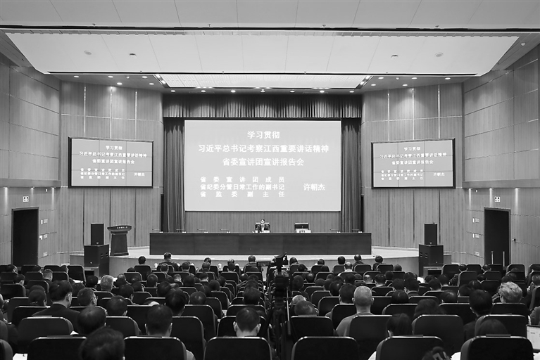 本报讯 (本报全媒体记者)11月9日下午,学习贯彻习近平总书记考察江西重要讲话精神省委宣讲团报告会在江西财经大学举行。省委宣讲团成员、省纪委分管日常工作的副书记、省监委副主任许朝杰作宣讲报告。