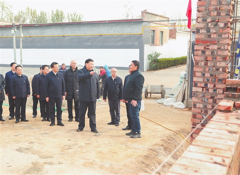 11月10日,中共中央总书记、国家主席、中央军委主席习近平在北京、河北考察灾后恢复重建工作。这是10日下午,习近平在河北保定涿州市刁窝镇万全庄村房屋重建施工现场考察。 新华社记者 鞠 鹏摄