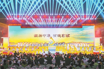 山水相逢,终有一别。世界客属第32届恳亲大会于11月9日晚在世界客家民俗文化城举行闭幕式。惜别是为了下一次再聚,河南省洛阳市接过第33届世客会会旗,并以主办地身份带来特色文艺节目表演,闭幕式上还宣布海南省海口市为第34届世客会举办地。随后,在首届客家民俗文化艺术节晚会文艺表演中,第32届世客会正式闭幕。