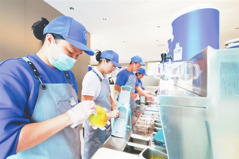目前,“轻茶里”门店在全国分布近500家,仅赣州就有70家,并建立了赣州、南昌、厦门、成都4个供应链配送中心。有了充足的资金,“轻茶里”还创建了子品牌“鲸时咖啡”,目前已在赣州开设了17家直营店,拓宽了就业渠道。在建行的金融支持下,“轻茶里”积极响应国家号召,全国门店增加到近500家的同时,也提供了约2500个调饮师岗位,为稳就业保民生作出了贡献。