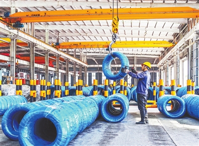 11月19日,位于新余经济开发区的江西卓信新材料公司生产车间内,工人正在抓紧生产优质钢丝,满足市场需求。当前,新余市加快钢铁等传统产业转型,推动制造业向“绿”而行,加快打造新型工业强市。通讯员 刘志勇摄