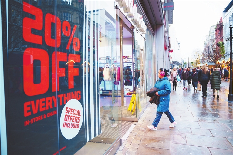 11月22日,一名女子走进英国曼彻斯特一家打折店铺。英国财政大臣杰里米·亨特22日在议会公布秋季预算案时表示,政府将削减税收以拉动经济增长。新华社发(乔恩·休珀摄)