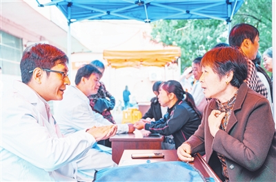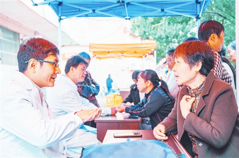 近日,江西中医药高等专科学校组织专家走进南丰县市山镇进贤畲族村开展中医药科普宣传暨义诊活动,宣传中医适宜技术、中医药科学养生保健知识,传播中医药文化。图为学校医学专业师生向群众提供医学咨询服务。刘帅标摄