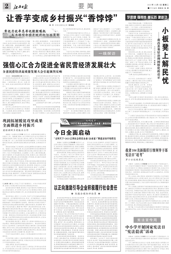 本报讯 (全媒体记者卞晔)12月4日,省委常委梁桂调研乡村振兴工作。他强调,要深入学习贯彻习近平总书记考察江西重要讲话精神,聚焦“走在前、勇争先、善作为”的目标要求,紧盯问题、举一反三,抓好省级考核发现问题整改,守牢不发生规模性返贫底线,高质量巩固拓展脱贫攻坚成果,全面推进乡村振兴。