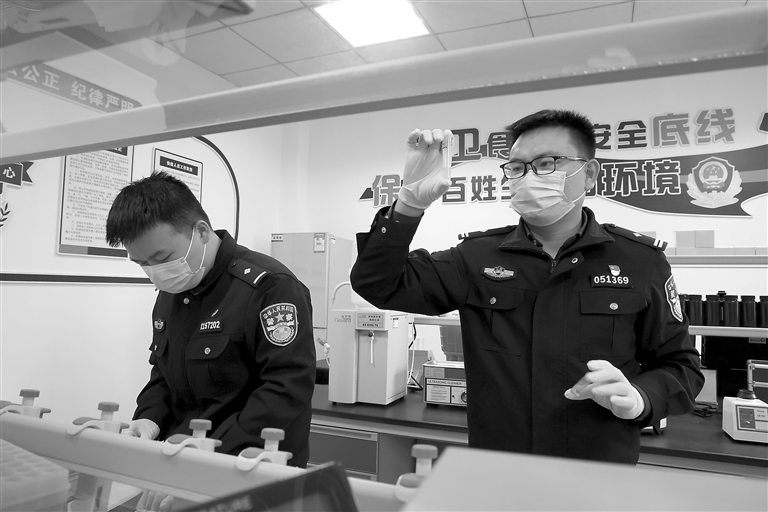 11月30日,新余市公安局食药环侦支队民警在快检中心对抽样食品进行检测。连日来,新余市组织食药环侦支队民警对各中小学校周边餐饮店及商铺的食品进行抽样检查,全面筑牢食品安全防线,守护孩子们“舌尖上的安全”。