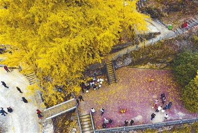 日前,位于横峰县新篁办事处崇山村的一棵百年银杏树,迎来最佳观赏季。金黄色的银杏叶与干净整洁的村庄一道,构成一幅美丽的乡村画卷,吸引了众多游人前来观赏。