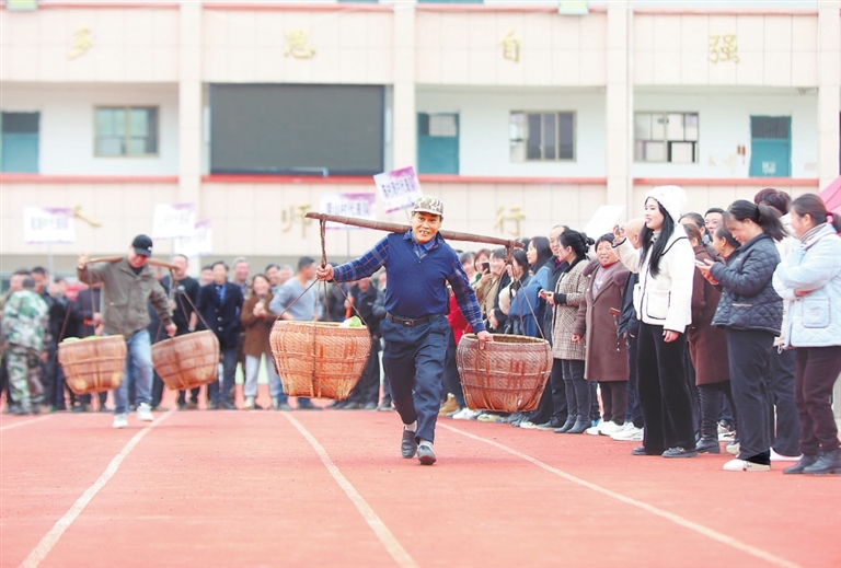 12月13日,横峰县新篁办事处举办农民运动会,6支代表队进行了拔河、担粮、踢毽子等趣味项目比赛,展现了村民的良好精神风貌。 通讯员 薛 南摄