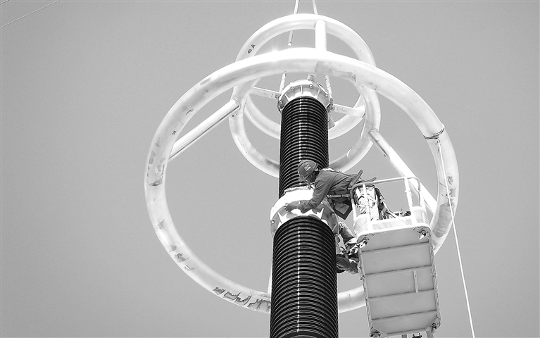 12月14日,在位于进贤县白圩乡的南昌1000千伏变电站扩建工程项目基地,施工人员正在安装避雷器均压环。该扩建工程为武汉-南昌特高压交流工程的组成部分,整体工程计划于2024年底投运,投运后将进一步提升华中电网电力交换能力,满足经济社会发展需求。本报全媒体记者 徐 铮摄