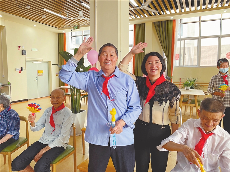 “爷爷奶奶们,跟着我一起唱,没有共产党就没有新中国……”课堂上,86岁的邓重庆跟着老师的节奏沉浸在音乐的世界中。养老服务中心的工作人员钟淑美介绍,邓重庆患有阿尔茨海默病,子女长期在外务工。为了更好地照料老人,此前邓重庆的家人将他送到了县里的一家养老院。