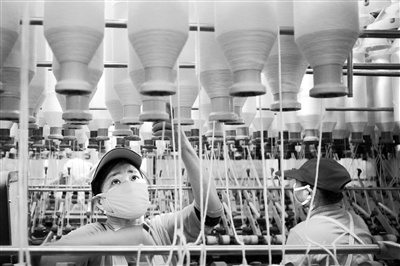 1月2日,上高县日升隆纺织股份有限公司生产车间内一片繁忙,工人正在抓紧生产赶制订单供应市场。新年伊始,上高县各企业开足马力加紧生产,力争取得新年“开门红”。 特约通讯员 陈旗海摄