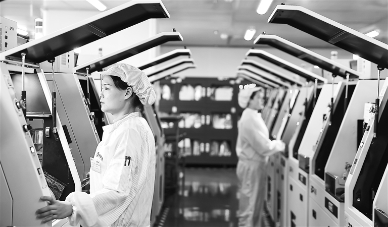 1月2日,瑞昌经开区科技园江西瑞晟科技有限公司生产车间内,工人正在智能生产线上赶制订单。新年首个工作日,瑞昌经开区众多企业生产车间一片红火、繁忙景象,工人们干劲十足,力争取得新年“开门红”。 特约通讯员 魏东升摄