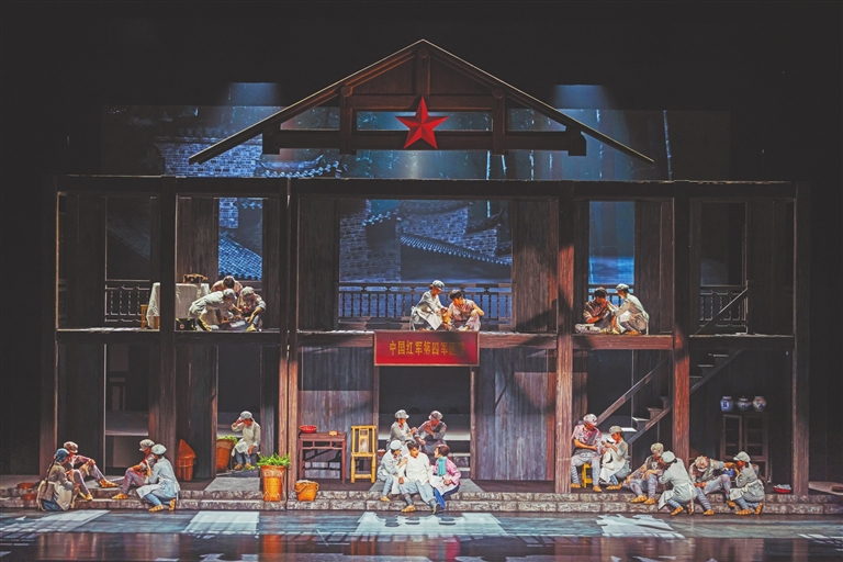 且把时针往回拨一些。2023年12月13日晚,伴随悠扬的谢幕曲“亮晶晶的盐粒像满天星,光闪闪的红军是不灭的灯。有盐同咸无盐同淡,跟着红军哥哥走哟,走过长夜到天明”,台上的演员们慢慢聚拢,向观众谢幕。台下的观众纷纷起立,回以雷鸣般的掌声。