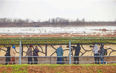 1月3日,余干县康山垦殖场插旗洲分场,芦苇旁、水塘边、树林间……全国各地的摄影爱好者选好“埋伏点”,架起“长枪短炮”,生怕错过候鸟动人和有趣的瞬间。“这里不仅是观鸟人的天堂,更是‘摄鸟人’的天堂。”来自浙江温州的摄影爱好者翁扬忠说,插旗洲白鹤数量多,大家习惯称这里为“白鹤洲”。