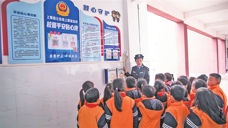 2023年,上栗公安采取“警+N”模式推动校园周边安全治理,检查发现并督促整改校园内部安全隐患79处,下发整改通知书34份,推动在全县重点危险水域增加了299个防溺水设施,常态开展防溺水法治宣传和水域巡查,实现未成年人溺亡事故零发生;对全县204所学校的校园安防“四个一”建设进行再规范再巩固,整改完善安全防护设施37处,以“技防”提升校园安全风险防范能力;在完善校园周边道路高峰勤务机制基础上,发动栗安义警、学生家长等群防群治力量,加强校园周边巡逻守护。