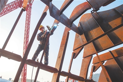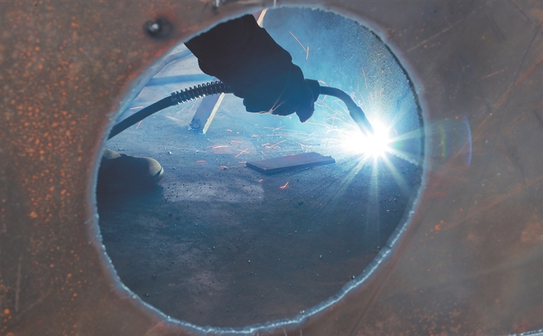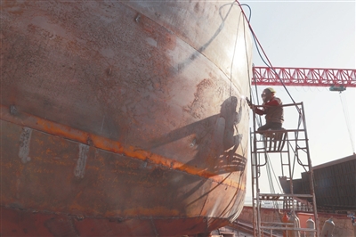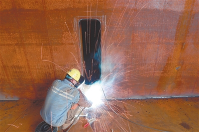 拥有几百名技术精湛的焊工,是保证船舶高质量交付的底气所在。侯昌贵是都昌造船总厂的一名普通电焊工,在这个行当里已经干了31年。“电焊这门手艺易学难精,要真正达到行业标准,需要很多年的技术沉淀。”身处船舶建造最基础也是最重要的焊工岗位,他精研技艺,熟练掌握各种焊接技术,“比如我正在进行的平角焊,是在油化船的隔板部位,精度要求高,焊缝都要进行X光检查,看焊缝里面有无缺陷,要做到100%合格。”船舶制造环境复杂,结构多、空间小,焊工通常需要根据焊缝位置选择平焊、立焊、横焊、仰焊等不同方式。