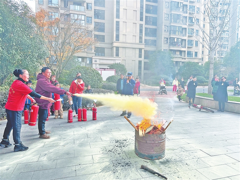 近日,南昌市红谷滩区消防救援大队联合龙兴街道办事处在该街道璜源山社区开展了“冬春火灾严防控 消防安全记心中”巡回演练活动。现场,党员志愿者向社区群众宣讲了消防安全知识,消防员组织社区群众开展了灭火应急演练。陶 鑫摄