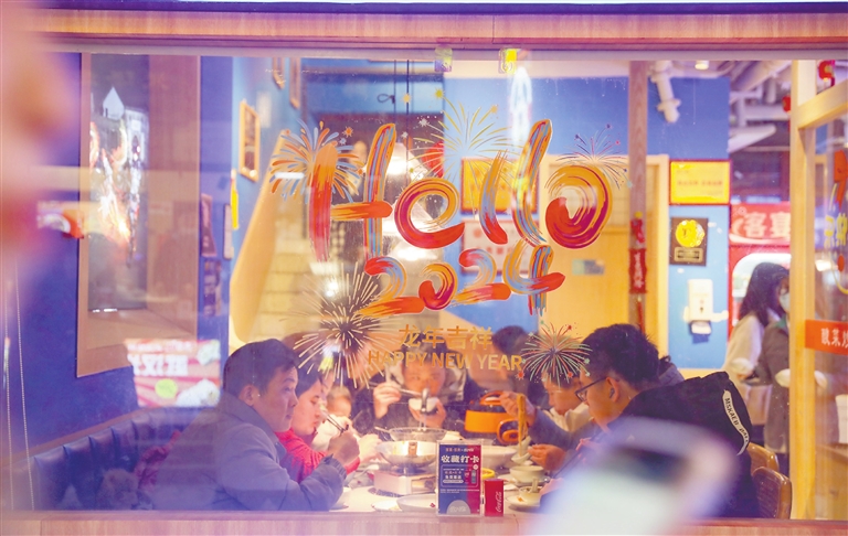 | 2月5日晚,南昌万寿宫历史文化街区张灯结彩热闹非凡,前来就餐、游玩的市民络绎不绝,浓浓年味扑面而来。