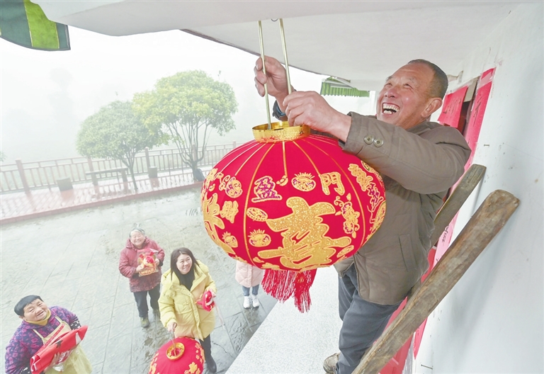 | 2月6日,井冈山市茅坪镇神山村村民正忙着贴春联、挂灯笼,到处都是迎春纳福的热闹景象。 本报全媒体记者 李 劼摄 |