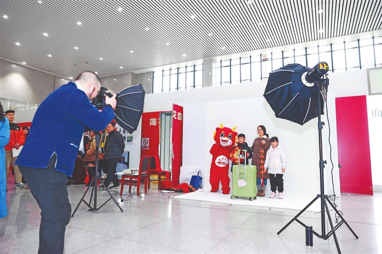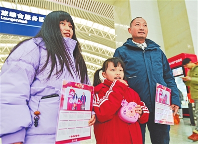 2月4日上午,江西日报社视觉中心和南昌火车站联合举办“送你全家福 温暖回家路——春运影像公益拍摄”活动。在南昌火车站候车大厅,专业摄影记者为南来北往的旅客免费拍照,并现场赠送用他们的照片制成的年历,让旅客们带着这份特殊的礼物回家。