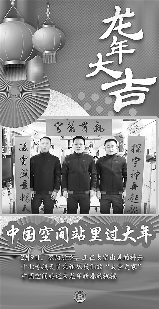 2月9日,农历除夕,正在太空出差的神舟十七号航天员乘组从我们的“太空之家”中国空间站送来龙年新春的祝福。