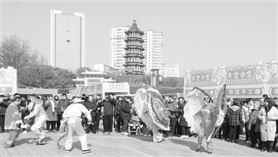 2月10日,在南昌市西湖区绳金塔历史文化街区,各种民俗文化活动营造出浓浓的春节喜庆氛围。本报全媒体首席记者 海 波摄