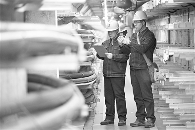 2月12日,国网银川供电公司员工在宁夏银川市贺兰县园艺路电缆隧道对电缆线路进行巡检。