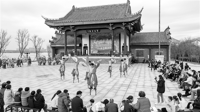2月13日,吉水县中国进士文化园内,人们在这里赏龙灯、观狮舞、看表演,感受中华优秀传统文化的魅力,欢喜过大年。特约通讯员 廖 敏摄