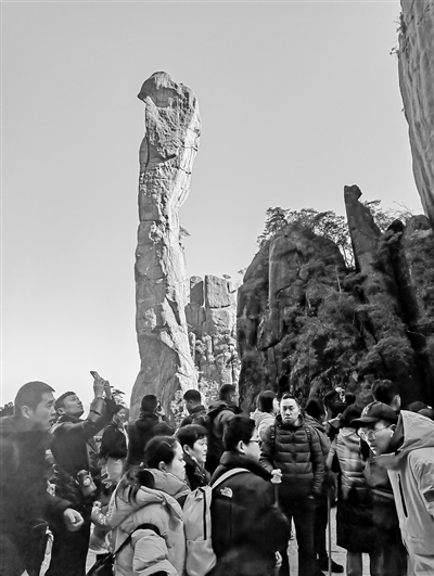 2月11日,三清山风景名胜区游人如织,巨蟒出山、女神峰等特色景点迎来众多游客打卡。春节期间,该景区工作人员、公安民警以及志愿者,放弃与家人团聚和休息时间,全力为游客服务,让游客在景区度过欢乐祥和的假日时光。本报全媒体记者 余 燕摄