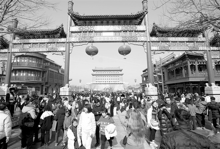 人们在北京前门大街游览。 新华社记者 王毓国摄