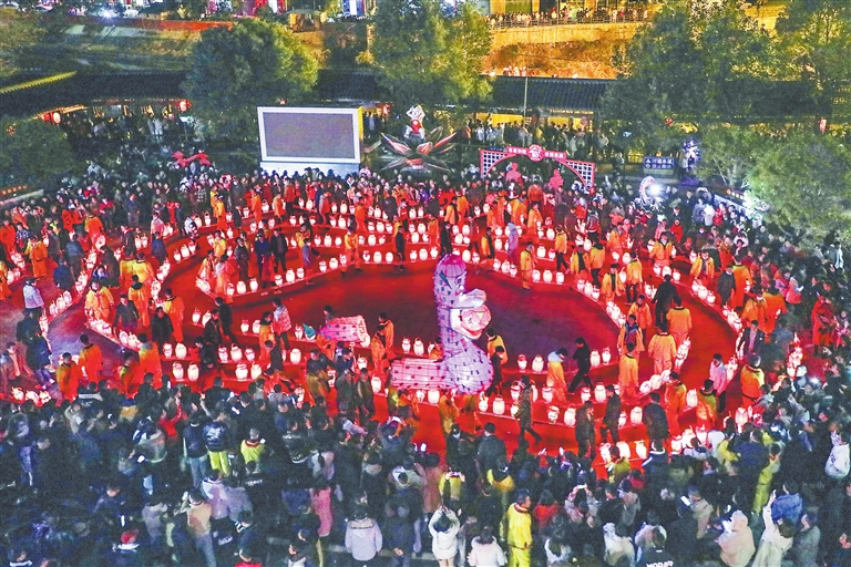 2月15日晚,广昌县塘坊镇举行桥灯展演贺新春活动,吸引大批村民和游客前来观看。塘坊桥灯起源于明朝永乐年间,每年正月,当地群众一直保留着舞桥灯贺新春迎元宵这一传统习俗,以此来祈愿新年五谷丰登、风调雨顺、国泰民安。本报全媒体记者 李 劼摄
